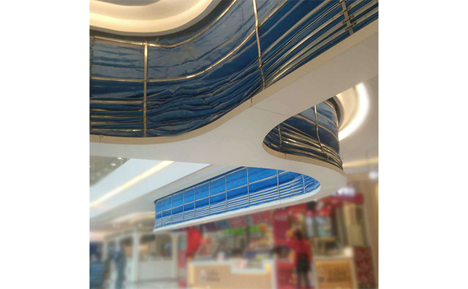 擋煙垂簾垂壁根據(jù)設計要求和現(xiàn)場實際情況采取如下施工順序:首先,搭設腳手架一放線一打眼--上脹栓一焊骨架。第二,吊件一安裝骨架…